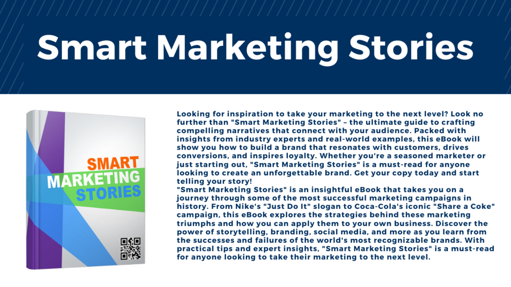 "Smart Marketing Stories" is an insightful eBook that takes you on a journey through some of the most successful marketing campaigns in history. From Nike's "Just Do It" slogan to Coca-Cola's iconic "Share a Coke" campaign, this eBook explores the strategies behind these marketing triumphs and how you can apply them to your own business. Discover the power of storytelling, branding, social media, and more as you learn from the successes and failures of the world's most recognizable brands. With practical tips and expert insights, "Smart Marketing Stories" is a must-read for anyone looking to take their marketing to the next level.